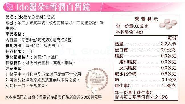 船井-醫朵雪潤白皙錠 每天擁有紅潤好氣色 1盒14包