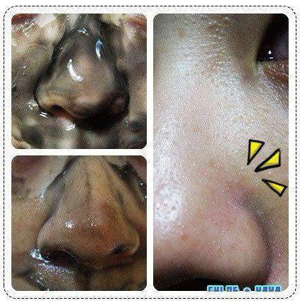 有人敷完更清楚看見自己的粉刺、連週圍正發炎的情況看得 更清更楚...呵呵~沒錯喔!竹炭成份會吸附皮膚的圬垢 ,皮膚變乾淨了...頓時臉上更多的瑕疵便一覽無遺喔!